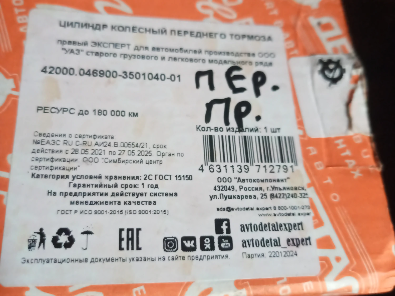Продам новый тормозной цилиндр переднего моста УАЗ передний правый. Покупал на военный мост, поставил дисковые тормоза, не пригодился.
